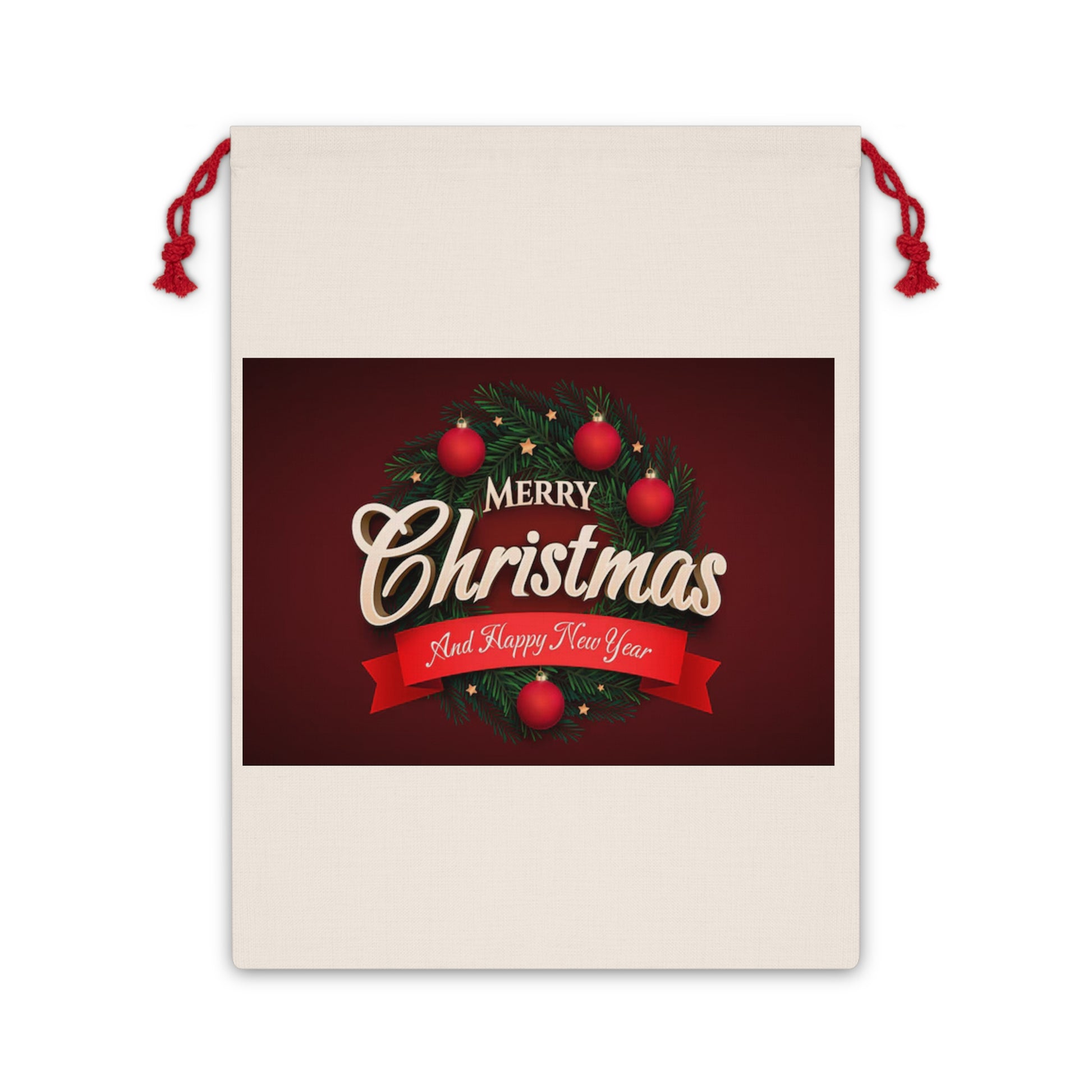 Christmas Gift Bag — 'Merry Christmas and Happy New Year' Drawstring Favor Bag