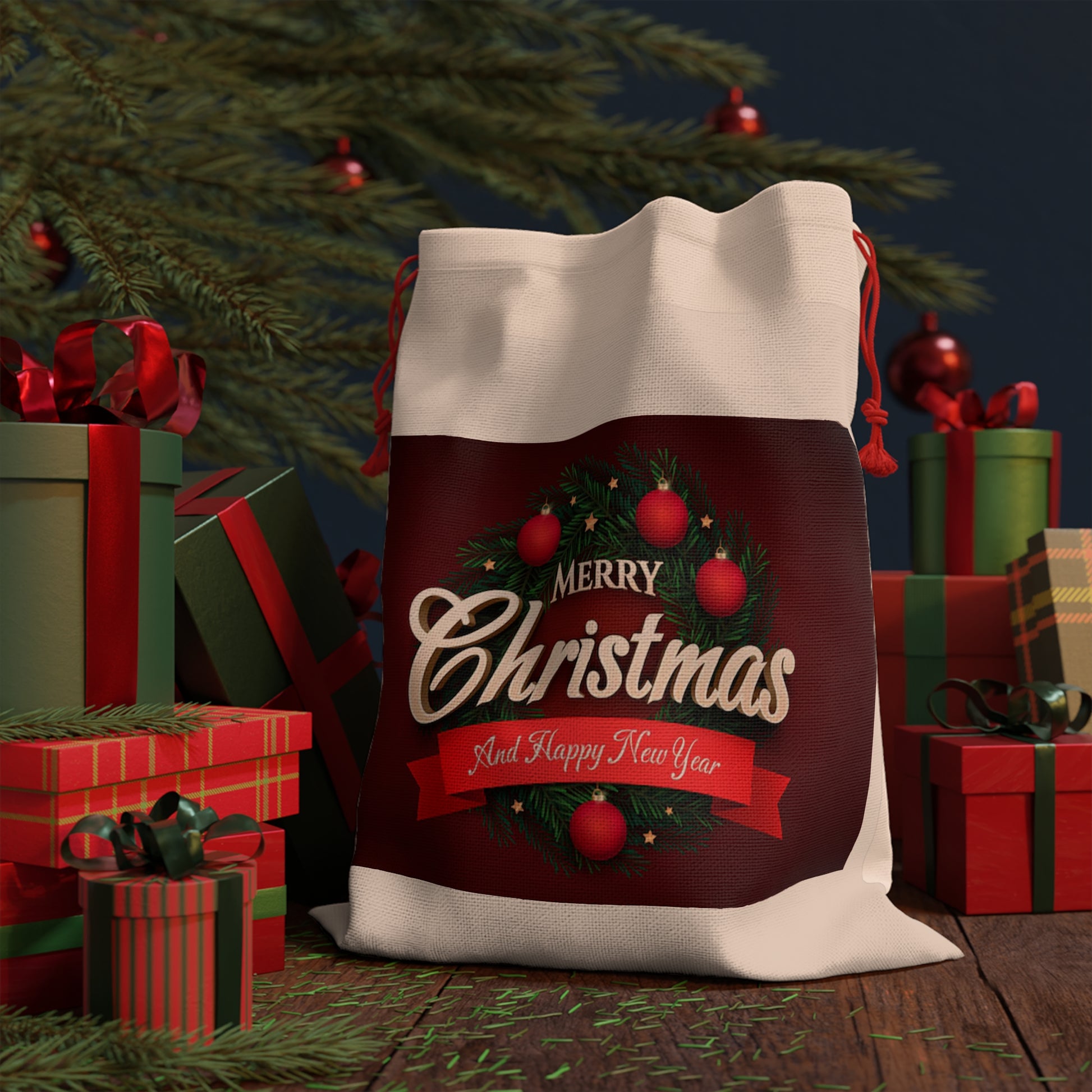 Bring a warm, nostalgic note to holiday gift-giving with this roomy vintage-style gift bag. The natural fabric and sewn-in red drawstring feel familiar and comforting in the hand, while the classic “Merry Christmas” wreath artwork sets a cozy, old-fashioned tone under the tree. Large enough to hold multiple wrapped presents or special goodies, this bag simplifies presentation without losing charm — tuck in treats, homemade gifts, or small keepsakes and let the design do the celebrating.