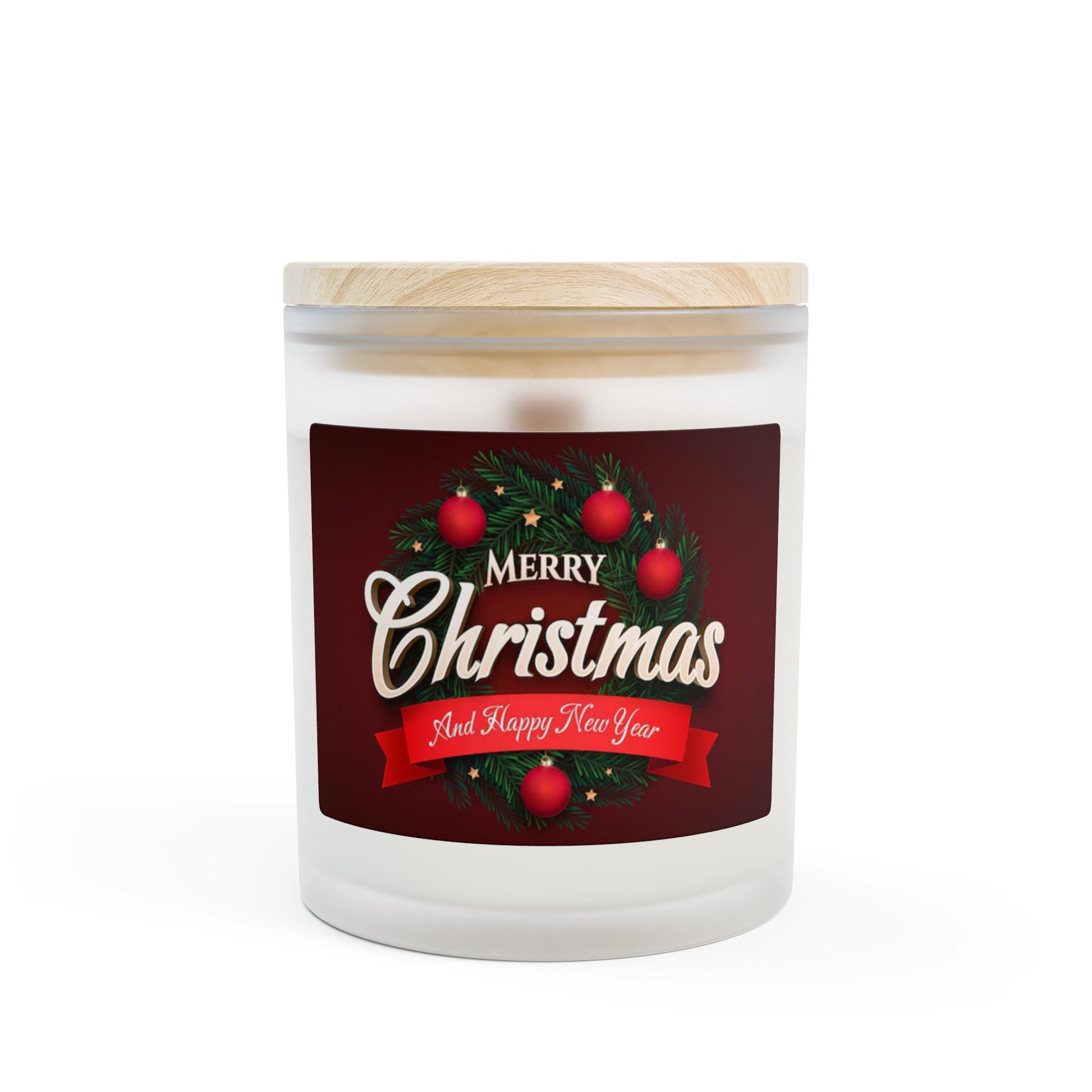 Merry Christmas Frosted Glass Candle — 11oz Holiday Scented Candle with Wreath Design